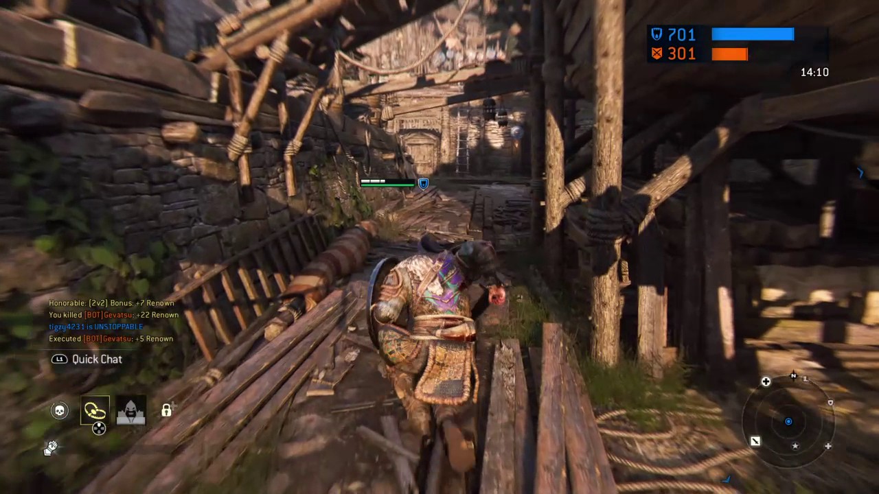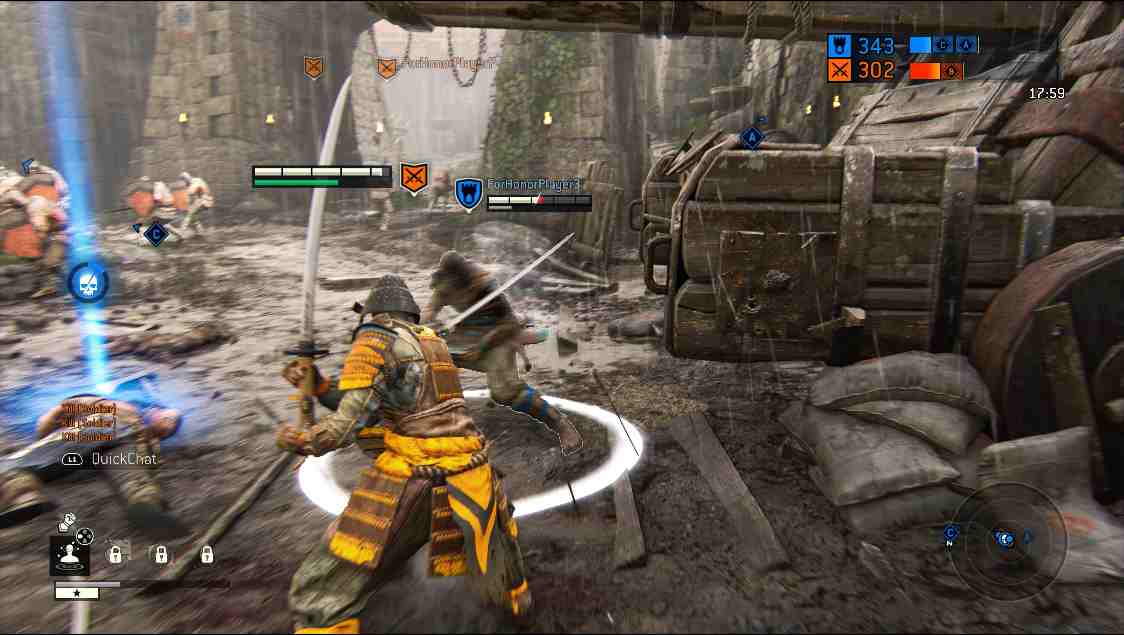 Similar to the single-player campaign, the multiplayer modes feature perks, AI minions, and the Art of Battle system. As the competitive multiplayer modes feature a structure similar to that of shooters, the creative director of the game called For Honor a “shooter with swords”. Friendly fire is also featured in the game. Players can cause damage to their own teammates if they accidentally or intentionally hit them with their blades.[ The multiplayer aspect also allows players to customize their characters. For instance, the armor that the characters wear can be changed and modified. There are seven game modes: